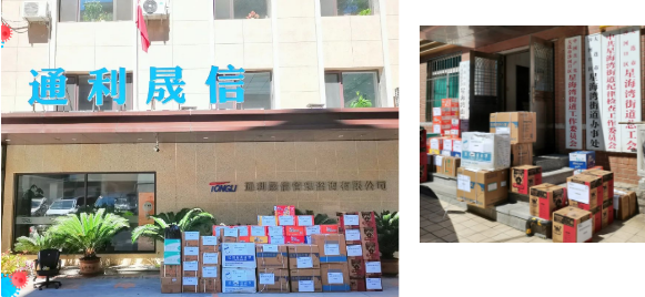通利晟信心系社区防疫工作的紧迫形势,自备车辆和人员运输装卸捐赠物资,向所在辖区星海湾街道捐赠医用N95口罩7200个,消毒酒精1000瓶,医用隔离面罩1000个,医用一次性pvc手套1000双,专用手部消毒液100瓶,消毒液40桶(3.78L),桶装方便面50箱,合计金额约3.2万元。